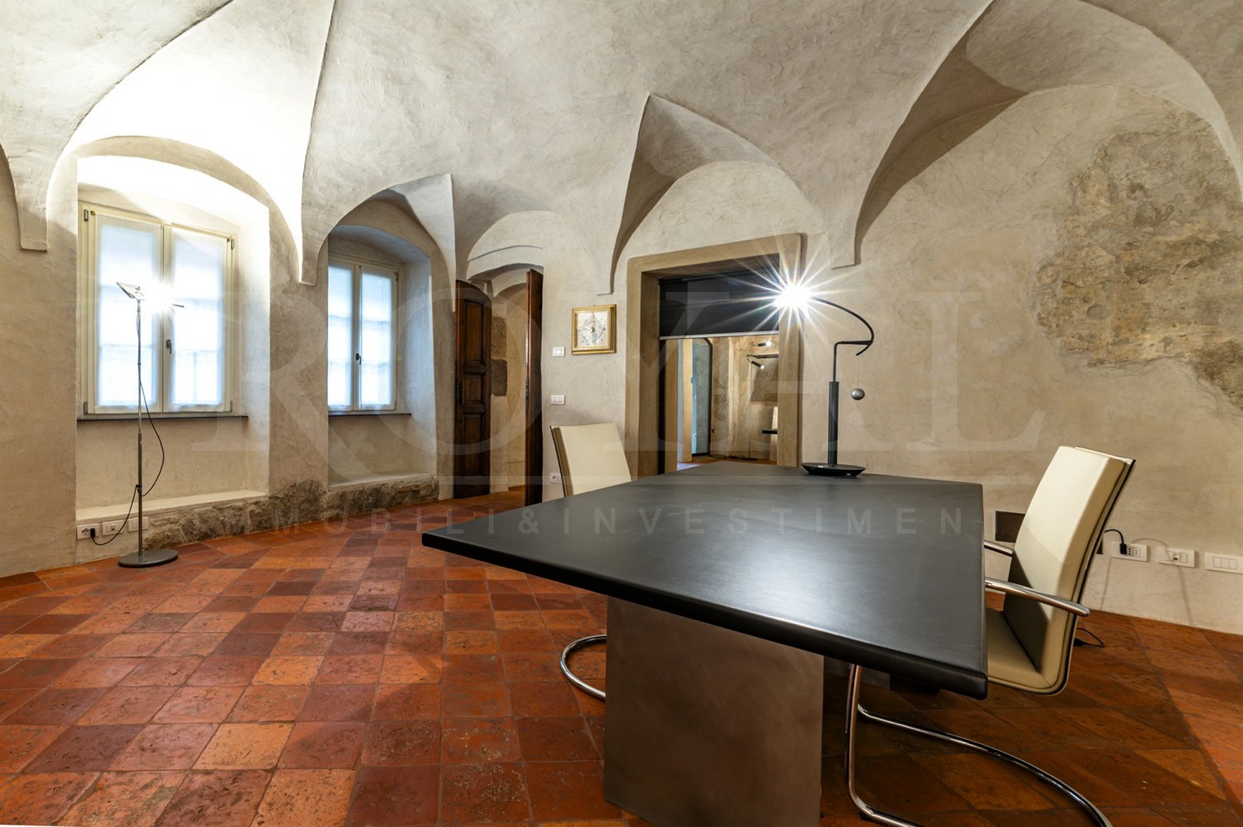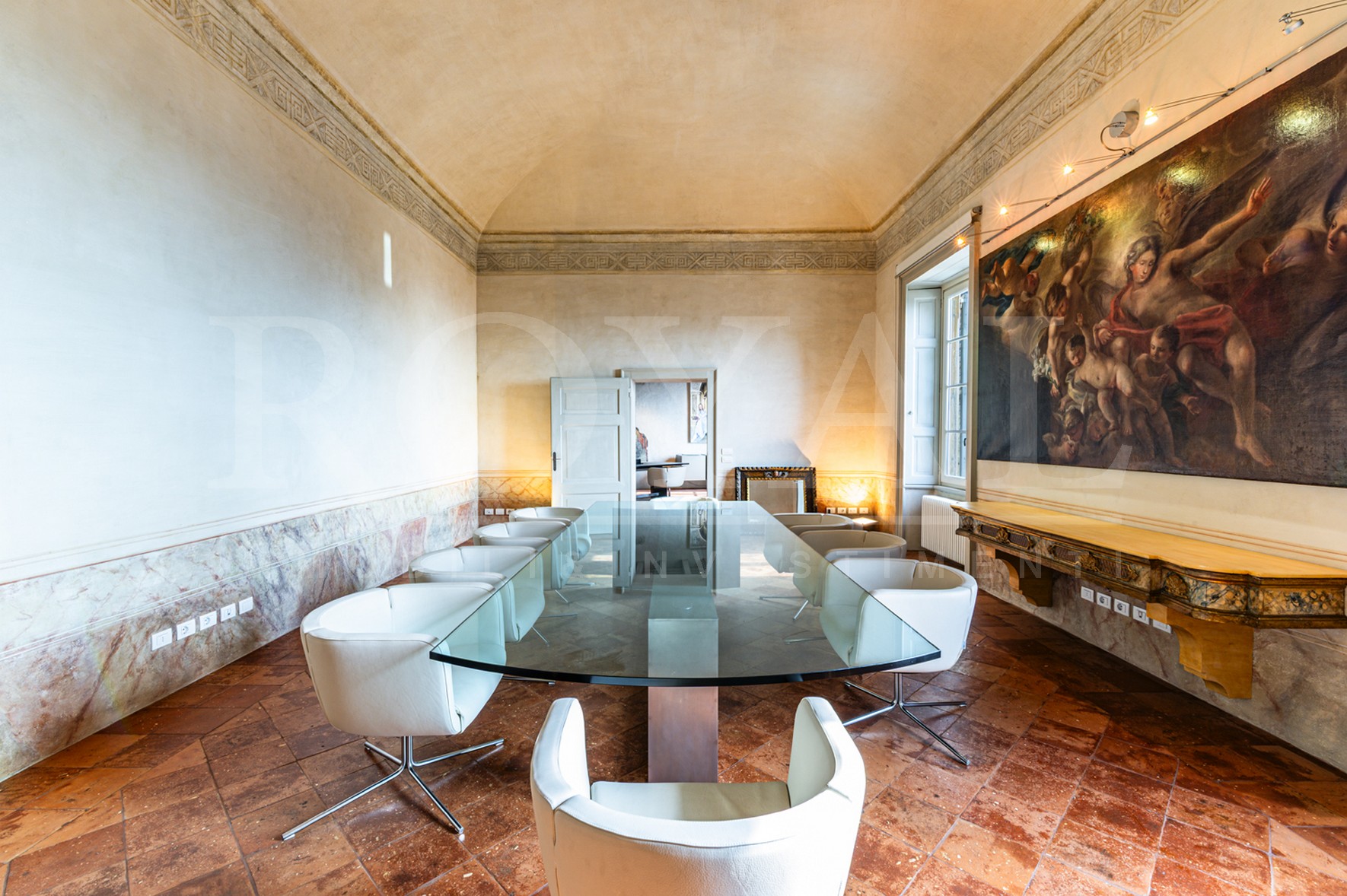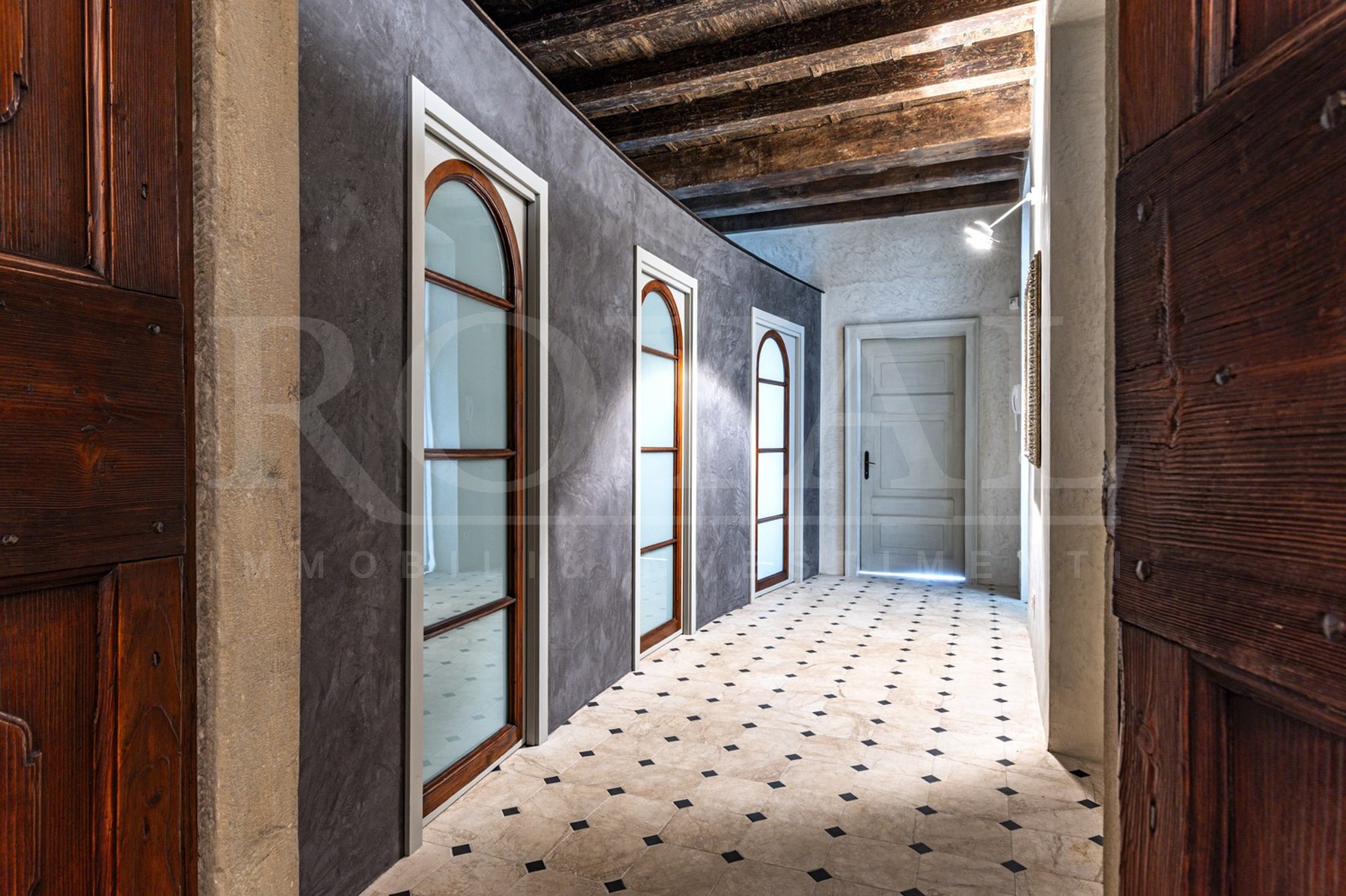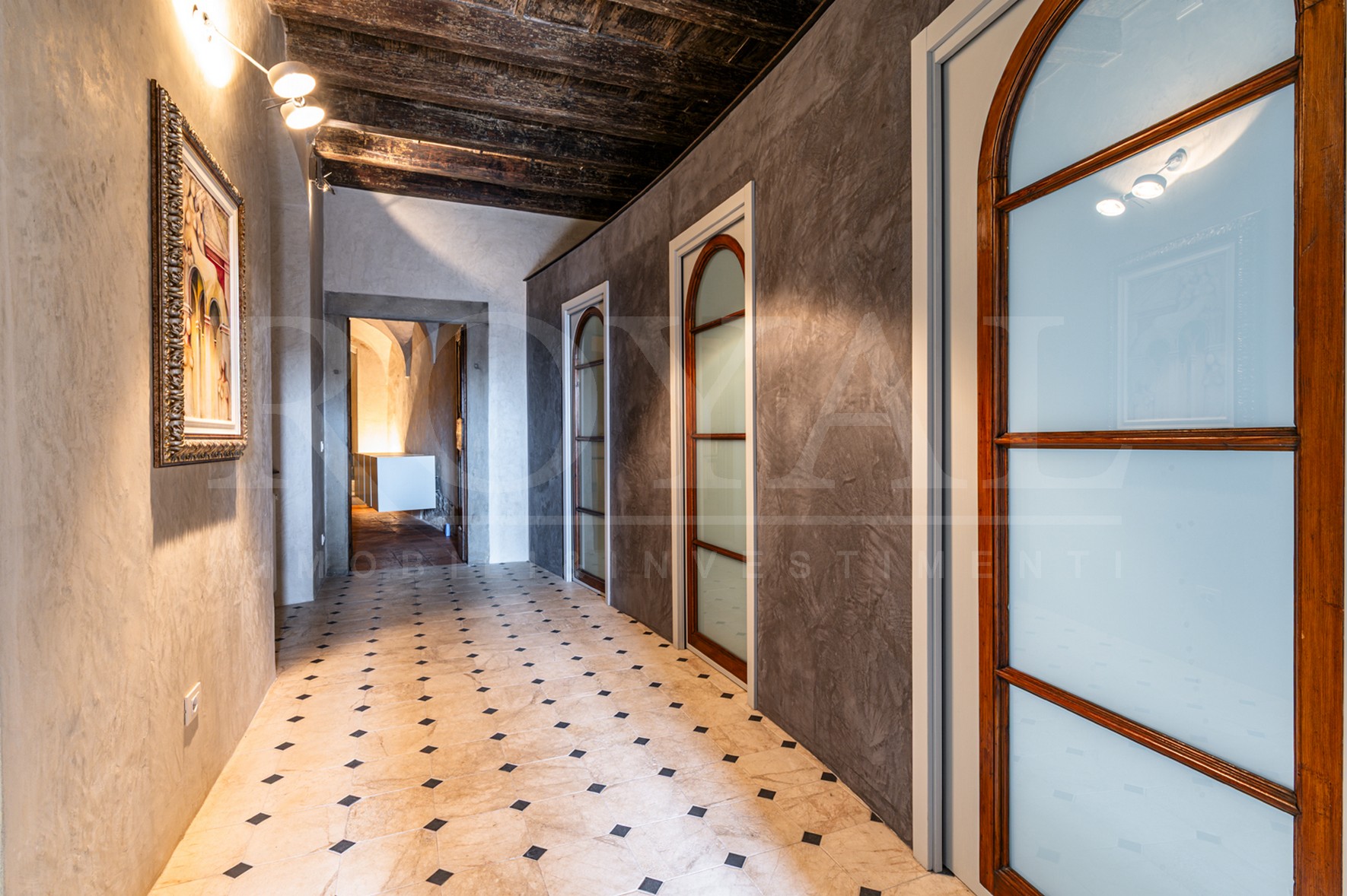 L’abitazione si sviluppa attraverso importanti sale di ricevimento, impreziosite da affreschi e grandi dipinti murali, una scenografica sala principale ideale per accoglienza o rappresentanza, ulteriori ambienti facilmente personalizzabili come zona living, studio o camere, oltre a locali di servizio.