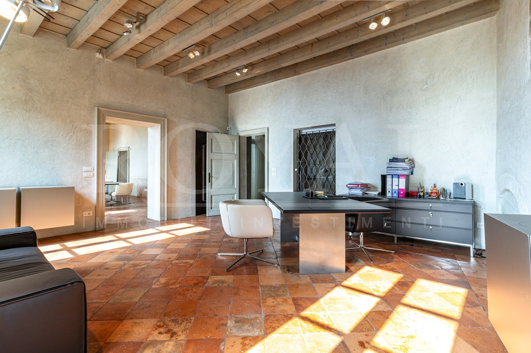 La proprietà si distingue per ambienti di rappresentanza di rara eleganza, caratterizzati da soffitti alti, finiture originali dell’epoca, pavimentazioni in cotto antico e splendidi elementi architettonici conservati nel tempo. Gli spazi interni, ampi e luminosi, offrono un’atmosfera unica, dove il fascino storico incontra comfort e funzionalità.