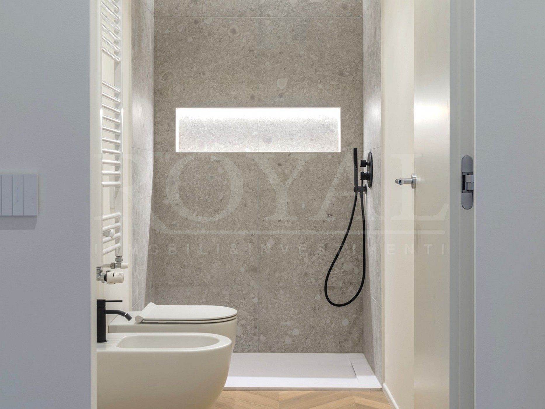 La soluzione sarà caratterizzata dalla presenza di pavimentazione in parquet a spina di pesce in tutto l'appartamento. Tapparelle elettriche con comando centralizzato e impianto di aria condizionata caldo/freddo. L'immobile che è attualmente in fase di ristrutturazione verrà consegnato finito entro la fine di Aprile 2026.